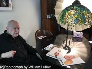 When I got to his apartment, I had to take off my shoes and I quickly got the impression that much of his furnishings were precious (some designed by famous artists), and that I couldn't just use any table he had. The one table that I could use was in a small dining area. It was made of black glass and had a beautiful Tiffany lamp that descended quite low over it. I began thinking that it would be hard to light his face because the Tiffany lamp would either be in the way or create some funny shadows on Mr. Lois' face. Since it was the only table I could use, I decided to place my mainlight off to one side. I began making some exposures and noticed that the shadows on the opposite side of his face were interesting, but probably too dark for a magazine cover. So, I set up a fill-light on the other side. I wanted to create an interesting lighting on Mr. Lois' face, but I wanted it to be informative as well. (This was for a cover, after all). I dialed the power down on the fill-in light until it was about two-stops less than the mainlight. This provided enough information but still kept the integrity of the shadows.