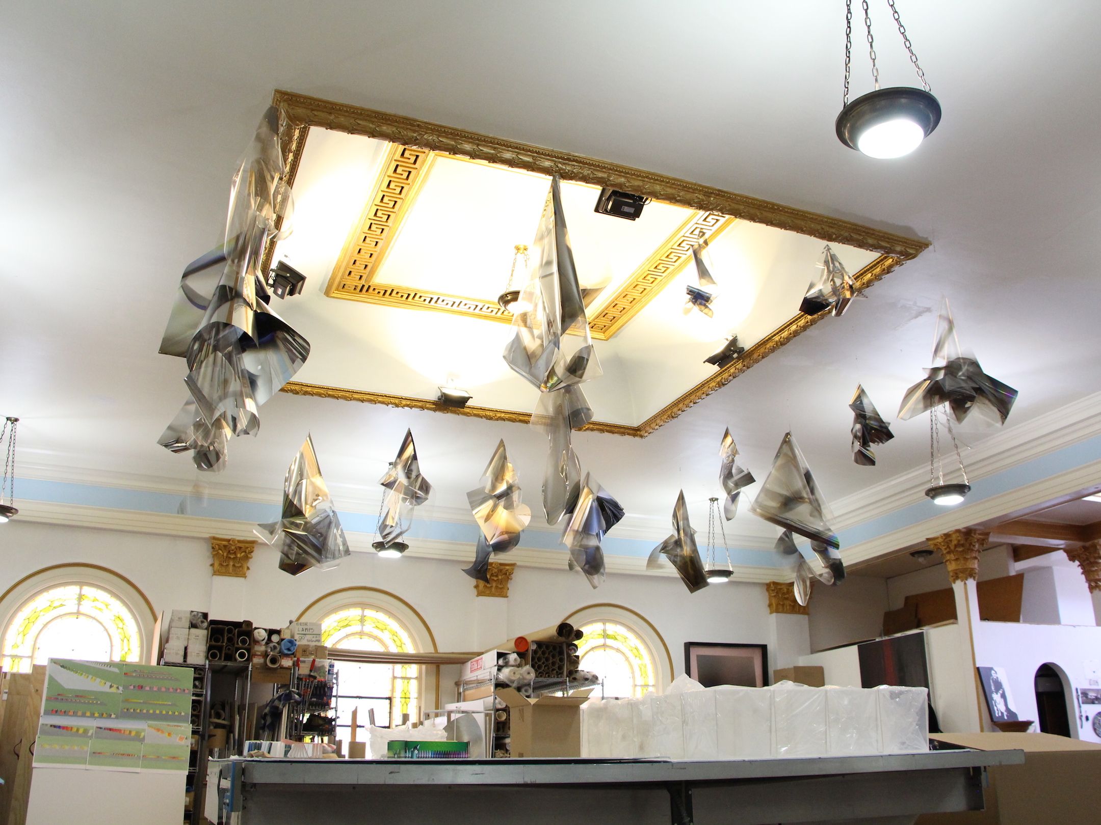 “The original installation was brutally difficult because of the winds and the cold. But we got it up,” Bell recalls those winter days, sitting back behind his desk in his Venice studio. “Each of these parts weigh 350 pounds, and to be carrying a sheet of glass, 6 by 8, in a 45 mile-per-hour wind and 30 degrees is dangerous, to say the least.”